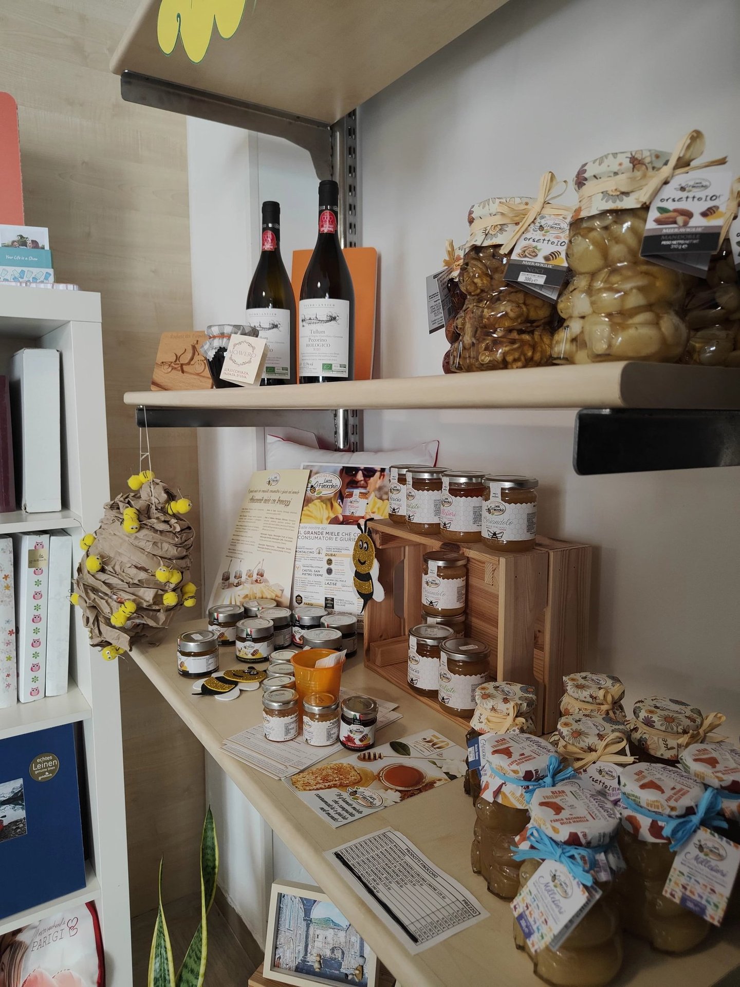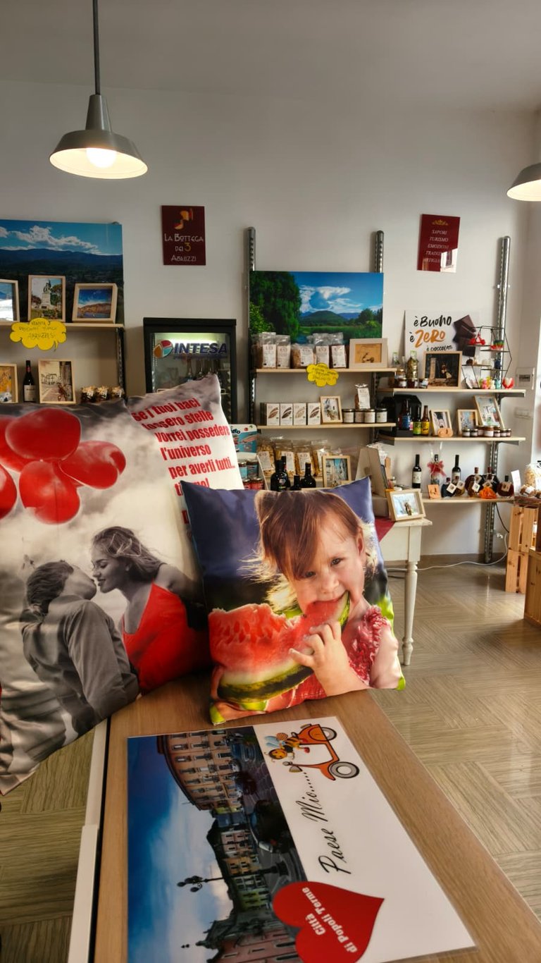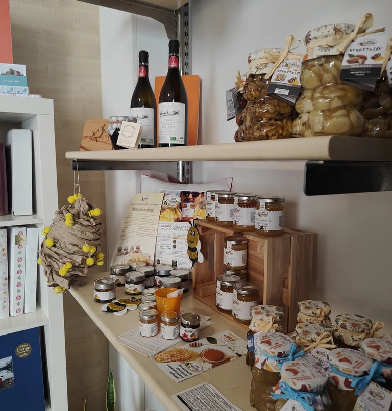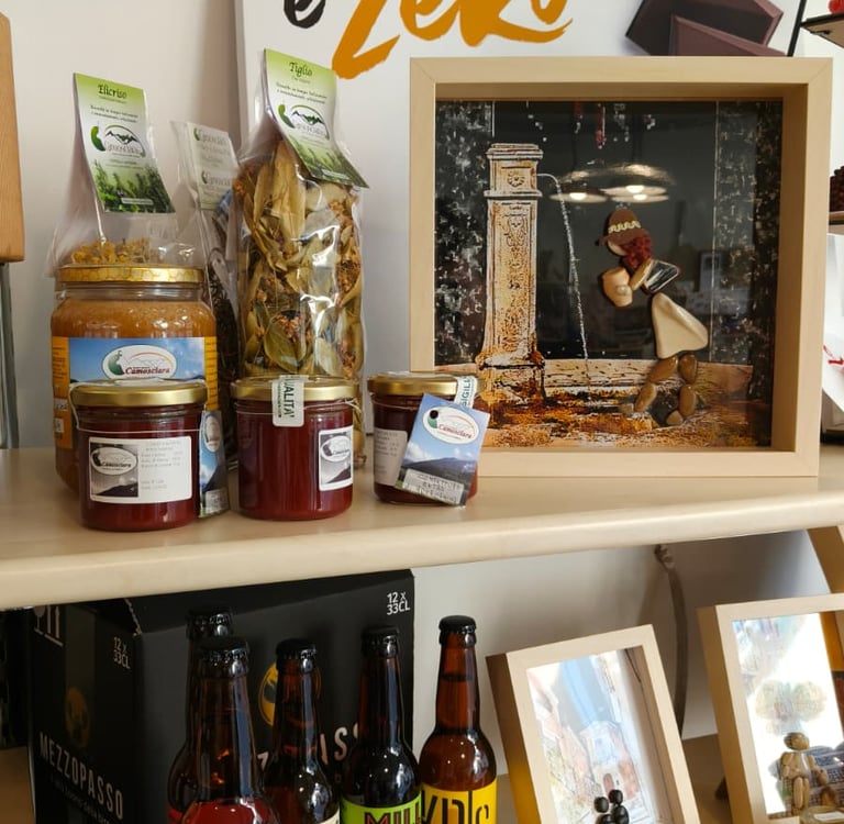 Troverai prodotti agroalimentari selezionati (miele, zafferano, olio, pasta, vini, confetture, dolci tipici), artigianato locale, idee regalo e una selezione di eccellenze che non trovi nella grande distribuzione. Avrai la possibilità di usufruire di servizi fotografici "Photosì" con il supporto del fotografo professionista Luca Taricani. Inoltre, la Bottega ospita eventi, degustazioni e iniziative culturali legate alla comunità.